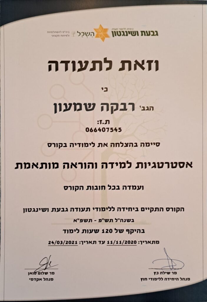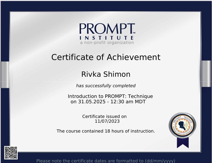 • הכשרה מקצועית רחבה – תואר ראשון בהפרעות בתקשורת והסמכה בשיטות טיפול מתקדמות כמו PROMPT, MYOTAF ו"נעים בתנועות".